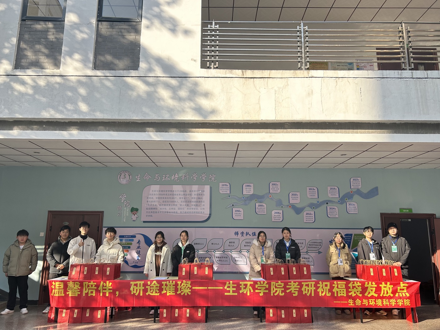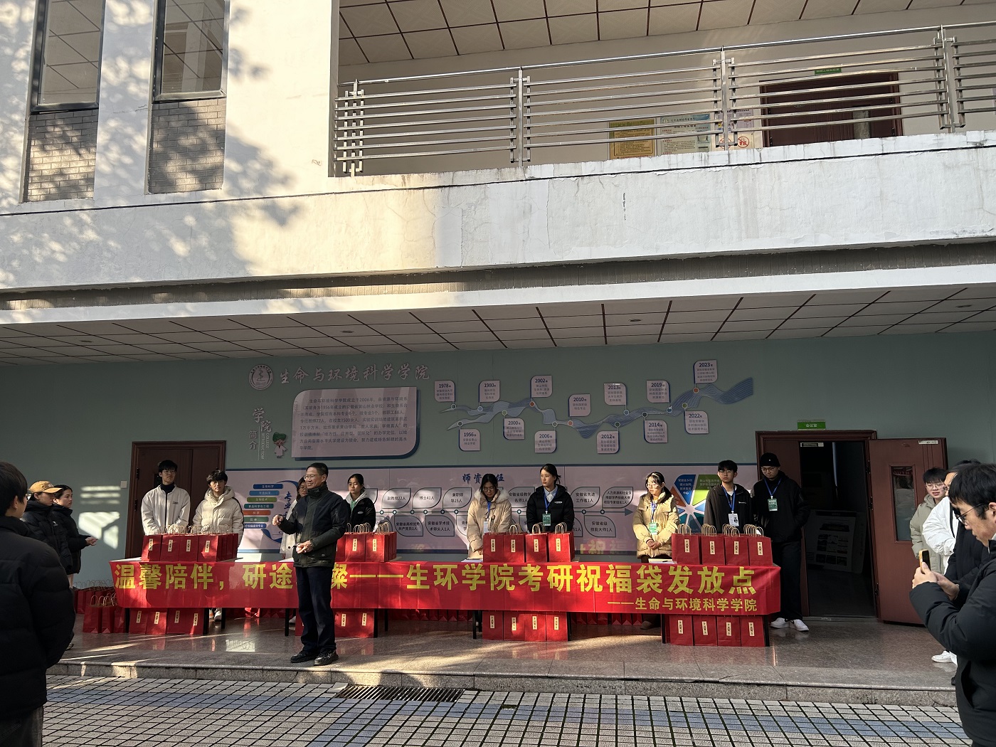又是一朝寒冬至,又是一年考研时。为陪考研学子跑完“最后一公里”,助力考研冲刺,12月16日,yl6776永利集团开展“温馨陪伴,研途璀璨”为考研学子发放祝福礼袋活动。yl6776永利集团党政领导吕顺清、潘健、万志兵和团委副书记王秋阳参与此次活动,学院团委、学生会成员负责发放。