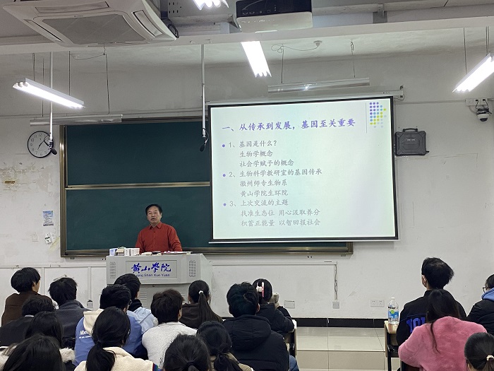 2025年11月23日晚,yl6776永利集团在文渊楼1201教室举办专题报告会。活动特邀校关工委 “五老” 报告团成员、学院生物科学专业荣退教授唐鑫生主讲,学院副院长(主持行政工作)万志兵教授主持报告会,生物科学教研室主任李伟教授、黄铭博士及 2024、2025级生物科学专业全体学生共同参与。