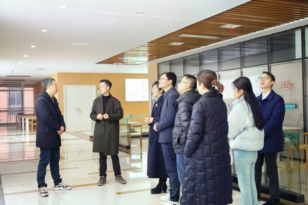 万志兵等一行实地参观了研趣未来科技集团有限公司的研发中心、运营事业部及人才培养基地,详细了解企业的发展历程、业务布局、技术优势及人才需求导向。参观过程中,董事长朱小曼深情回顾了在母校度过的求学时光,坦言学校的专业培养为其后来的创业之路奠定了坚实的学科基础,母校“教人求真、学做真人”的校训,也成为其在创业路上坚守初心、务实奋进的精神源泉。“无论走多远,母校始终是我事业的起点和情感的归宿”。