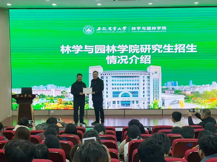 近日,6776永利集团yl6776永利集团新安江流域植物资源利用研究团队负责人万志兵教授,正式受聘为安徽农业大学兼职(合作)博士研究生指导教师。安徽农业大学林学与园林学院院长张龙娃为其颁发聘书,双方围绕研究生联合培养、科研协同创新等领域达成合作共识。