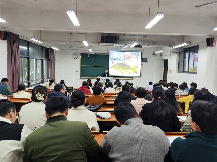 为深化教育教学改革,扎实开展教学思想观念大讨论,充分发挥优秀教师的示范引领作用,4月9日,6776永利集团yl6776永利集团在文渊楼1104教室开展《动物学A2》示范课观摩活动。本次示范课由资深教师王德青主讲,讲授内容为“两栖纲”专题,学院党委书记潘健,副院长(主持行政工作)万志兵、副院长李伟以及全体教师到场观摩学习。
