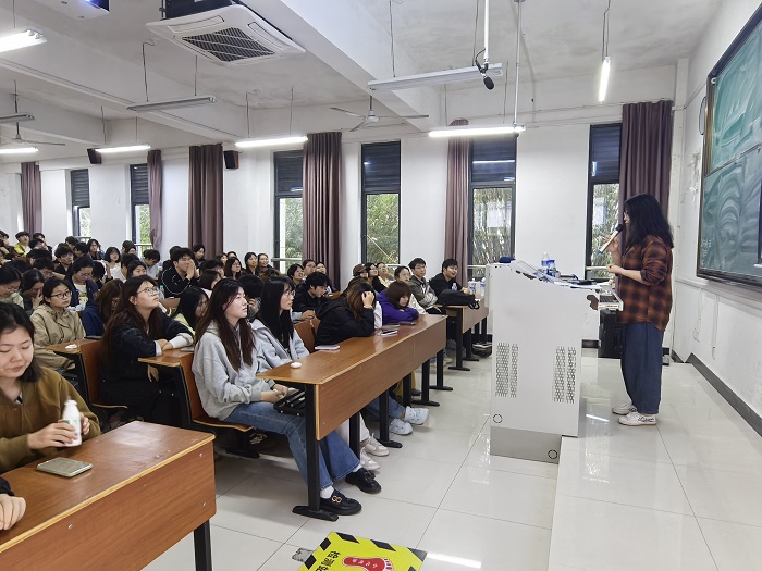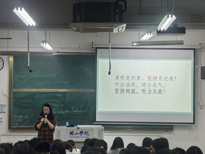 刘苗苗老师结合自身多年从事大学英语教学、四六级阅卷工作的丰富实践经验,围绕四六级考试大纲核心要求、题型分布特点、答题思路技巧及学生备考常见误区等方面进行了系统细致地讲解。她重点拆解了听力、阅读、写作与翻译四大核心模块的备考重点,通过真题实例生动解析了高频考点和易错题型,同时分享了高效利用真题、科学积累词汇、优化答题时间分配等实用备考方法,讲解深入浅出、针对性极强,现场互动氛围热烈,同学们认真聆听、详细记录,纷纷表示收获颇丰、受益匪浅。
