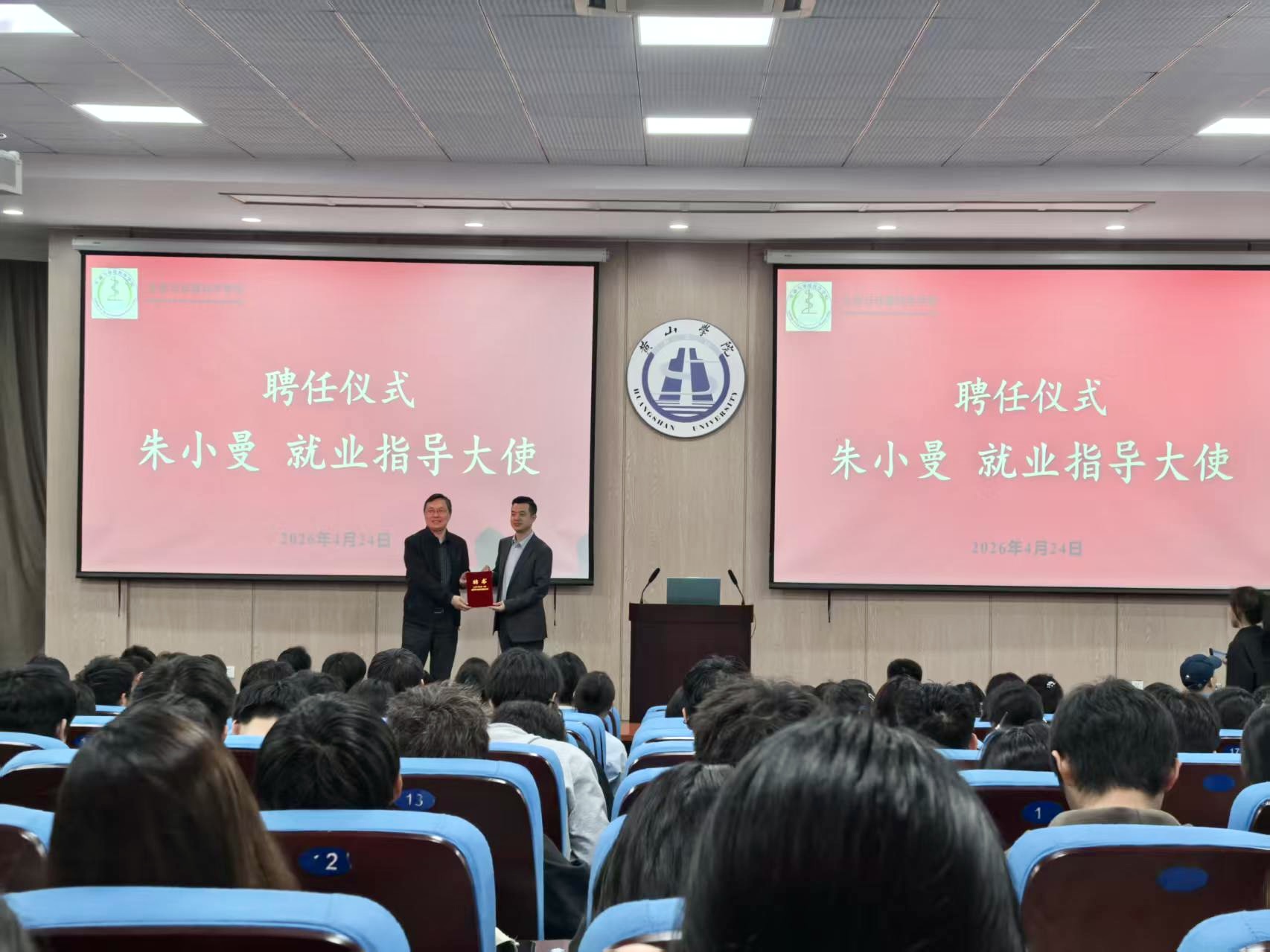 为进一步发挥校友领航作用,助力学子明晰学业规划、深耕考研备考、拓宽就业视野,扎实推进2027 届考研与就业规划指导工作,4月24日晚,yl6776永利集团在率水校区文端楼一楼报告厅举办校友领航•研途解惑——朱小曼校友就业指导大使聘请暨 2027 届考研宣讲动员分享会。副院长(主持工作)万志兵、经管学院13 级校友汤梦雅、生环学院14 级校友吴飞、全体专职辅导员及近300名学生参加分享会。党委副书记许健美主持会议。