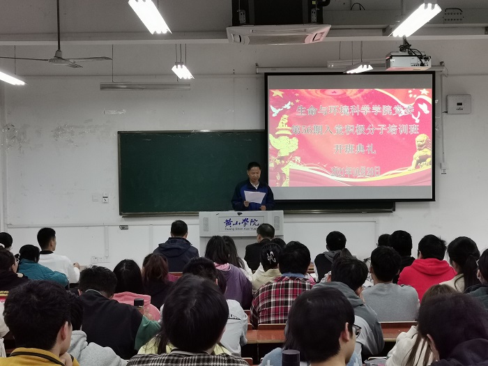 为深入学习贯彻习近平新时代中国特色社会主义思想和党的十九大精神,切实做好生环学院入党积极分子培训教育工作,10月20日下午,生环学院第56期入党积极分子培训班开班仪式于文渊楼1203教室举行。校党委委员、宣传部部长张赛出席仪式,生环学院党委书记吕顺清、党委副书记万志兵、各党支部书记、生环学院第56期入党积极分子培训班全体学员参加开班仪式。仪式由万志兵主持。