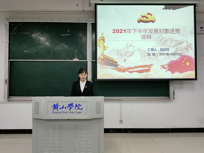 会议第一项议程开展2021年下半年拟发展对象述责答辩,李康、李宣等14名拟发展对象分别从学习生活、入党动机、志愿时长等方面向党组织进行了思想汇报;会上,支部党员对答辩人员的汇报一一进行了点评,在肯定的同时指出了答辩人员在PPT制作、语言表达等方面的不足,并就党的宗旨、四个意识、四个全面等党的基本知识向答辩人员提出问答。