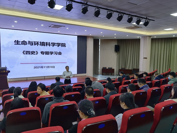 为贯彻落实学校关于党史学习教育工作部署,持续推进学院《四史》专题学习工作,11月10日下午,生环学院于文端楼第二报告厅召开《四史》专题学习会。学院党政班子成员、各党支部书记和全体教职工参加会议,院党委书记吕顺清主持会议。