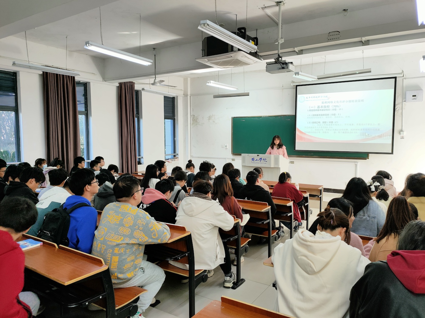 会议开始,江茹就开展易班网络文化月的评比细则做出了解读,并针对此次文化月对班级同学提出了3个要求:一是要积极参与党史学习、安全意识教育活动;二是要主动完成班级口号、班歌的投票;三是要完成轻应用签名墙签名、微社区评论、易瞄瞄话题发布、优课课程学习四项任务。随后,江茹就易班优课观看、易瞄瞄话题发布、微社区评论、轻应用签名墙签名等操作流程对班级同学做出了培训。最后,江茹呼吁全班同学积极配合文化月活动工作的开展,共创佳绩。