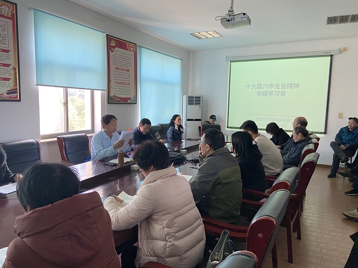 11月24日,生环学院于天都园林三楼会议室召开政治理论专题学习会,传达学习贯彻党的十九届六中全会精神。院党委书记吕顺清、院长佘新松、各党支部书记及全体教师参加会议。会议由吕顺清主持。