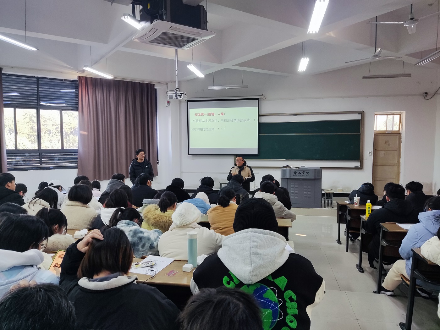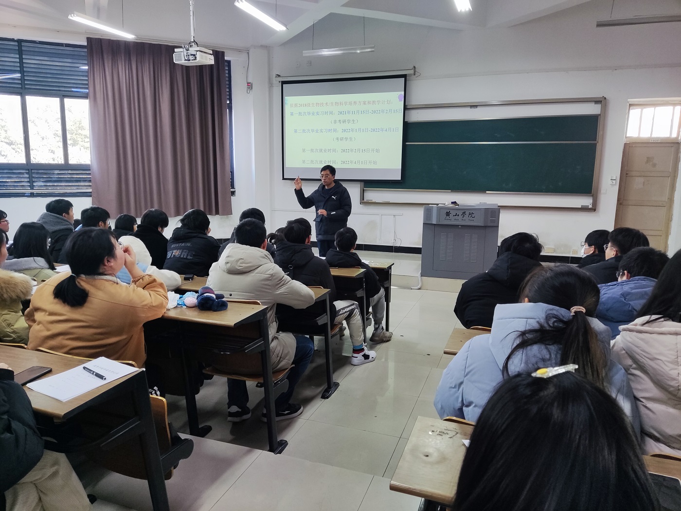 为做好毕业班离校工作安排,做好毕业班学生实习工作布置,12月27日,18生物技术班、18生物科学班、18林学班于文渊楼1206召开离校班会暨实习动员大会。就业指导中心主任陈向阳、生技教研室主任胡晓倩、生科教研室主任李伟、林学教研室主任郑磊、辅导员徐良玉及全体同学参加会议。