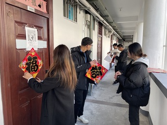 真诚的祝福,红火的“福”字寄托着人们辞旧迎新、接福纳祥的美好愿望。各党支部志愿者带着热爱生活、奋发向上的精气神分组搭档、齐心合力把一张张“福”字送到了学院每一间寝室中并张贴。