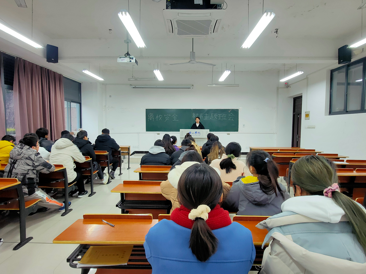 1月8日,20级园林二班在文渊楼1201教室举办离校安全教育主题班会,此次班会由班长程亚芬主持,该班全体学生参加此次会议。