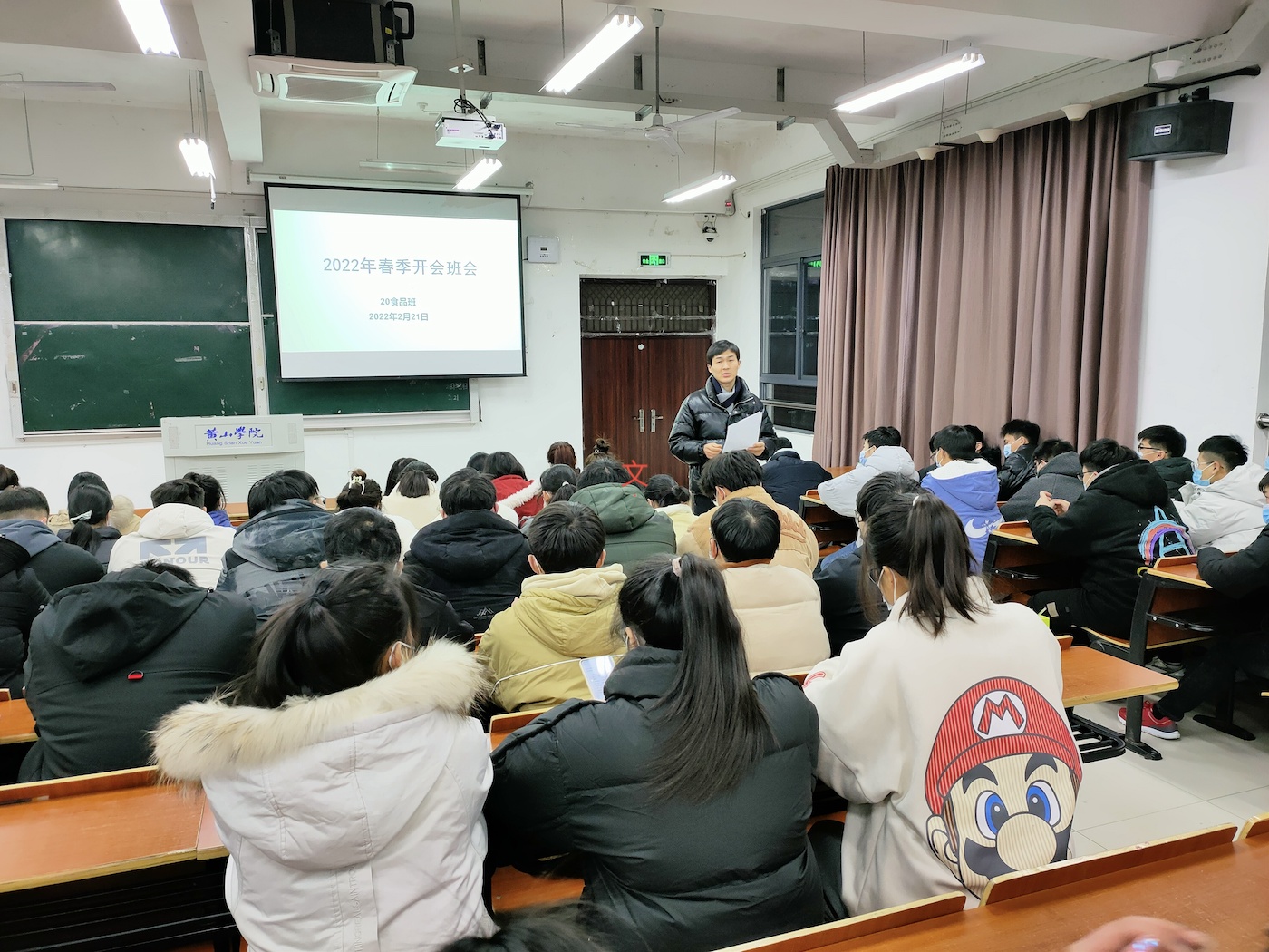 2月21日,20食品班在文渊楼1105教室成功召开春季开学班会。会议由辅导员徐良玉主持,20食品班全体同学参加。
