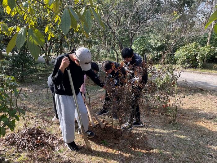 活动伊始,团支书王亚楠向大家介绍了植树节的由来和意义,并将同学们分为六个小组。一、二小组负责开垦田地;三、四小组负责挖苗种苗;五、六小组负责接水浇水。活动期间,同学们互帮互助,在欢声笑语中种下绿植,充分体现了劳动精神与团结精神。活动结束,各小组将工具归还,并拍照留念。
