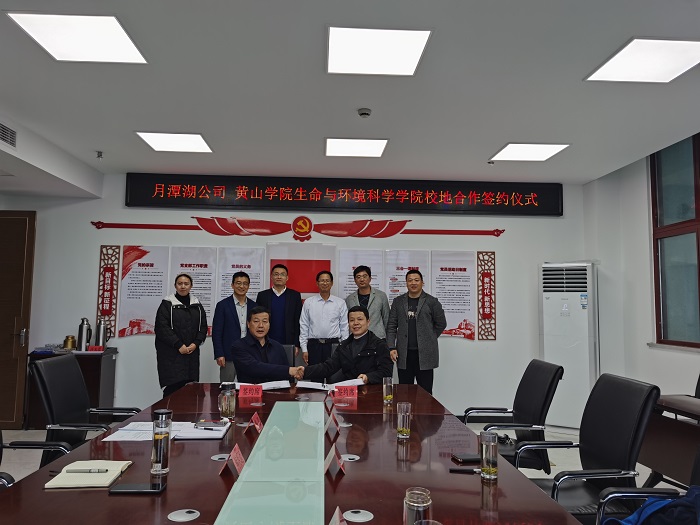 3月25日下午,yl6776永利集团和黄山市月潭湖开发投资有限公司在月潭湖公司会议室举行校地合作签约仪式。院党委书记吕顺清,院长佘新松,休宁县副县长胡建伟,黄山市月潭湖开发投资有限公司党支部书记、总经理鲍明远,副总经理李阳、汪水芬及相关人员参加签约仪式。