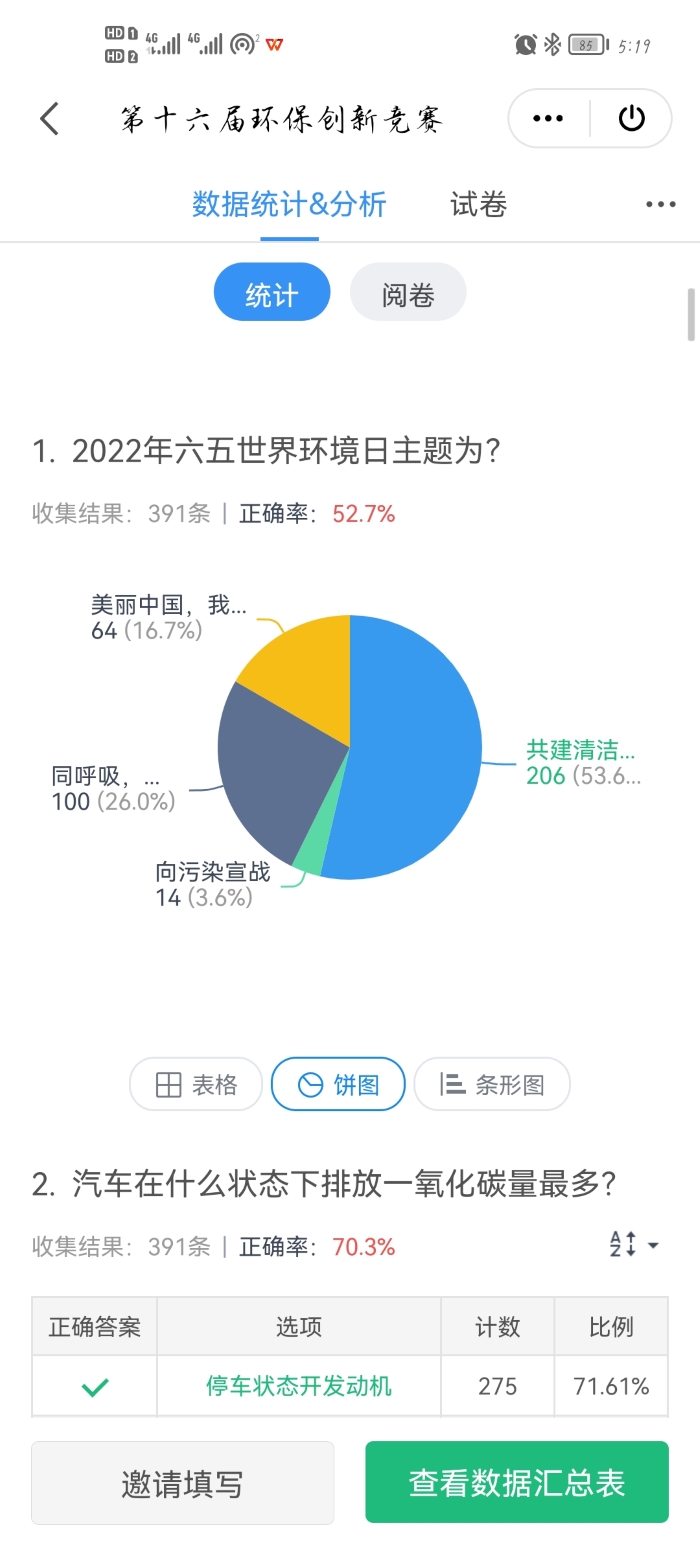 活动伊始,参与学生在规定时间内进行第十六届环保创新竞赛类线上答题,然后将答题完成页面截图,加上学生自身信息的水印后,发到活动群相册。