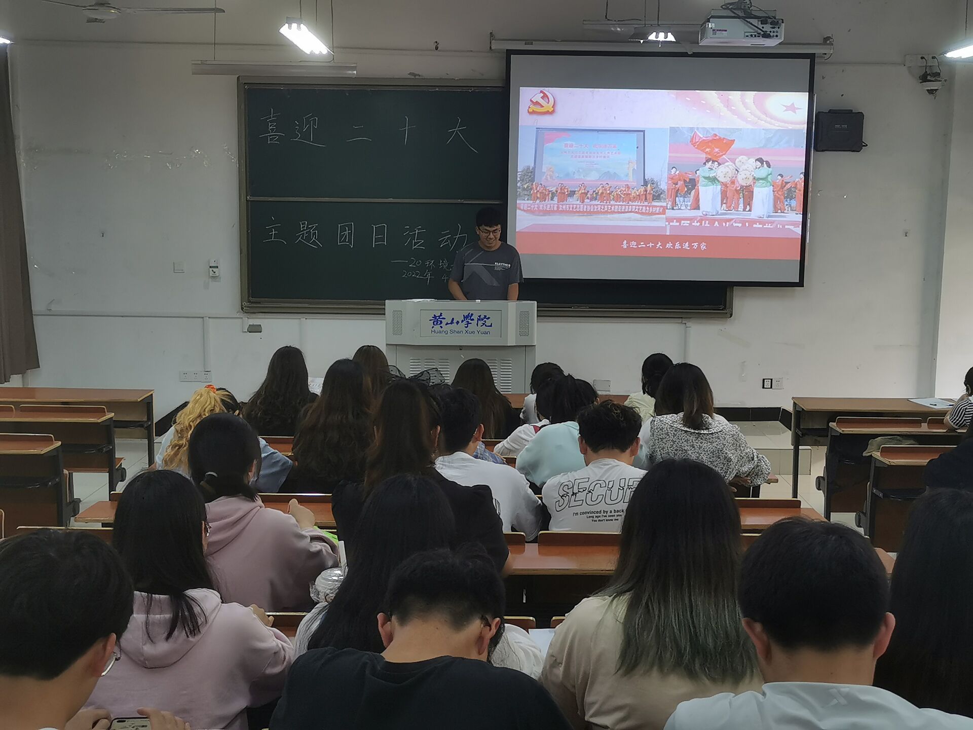 4月24日,20环境科学班在文渊楼1104教室举办了“喜迎二十大”主题团日活动,该班全体学生参加。