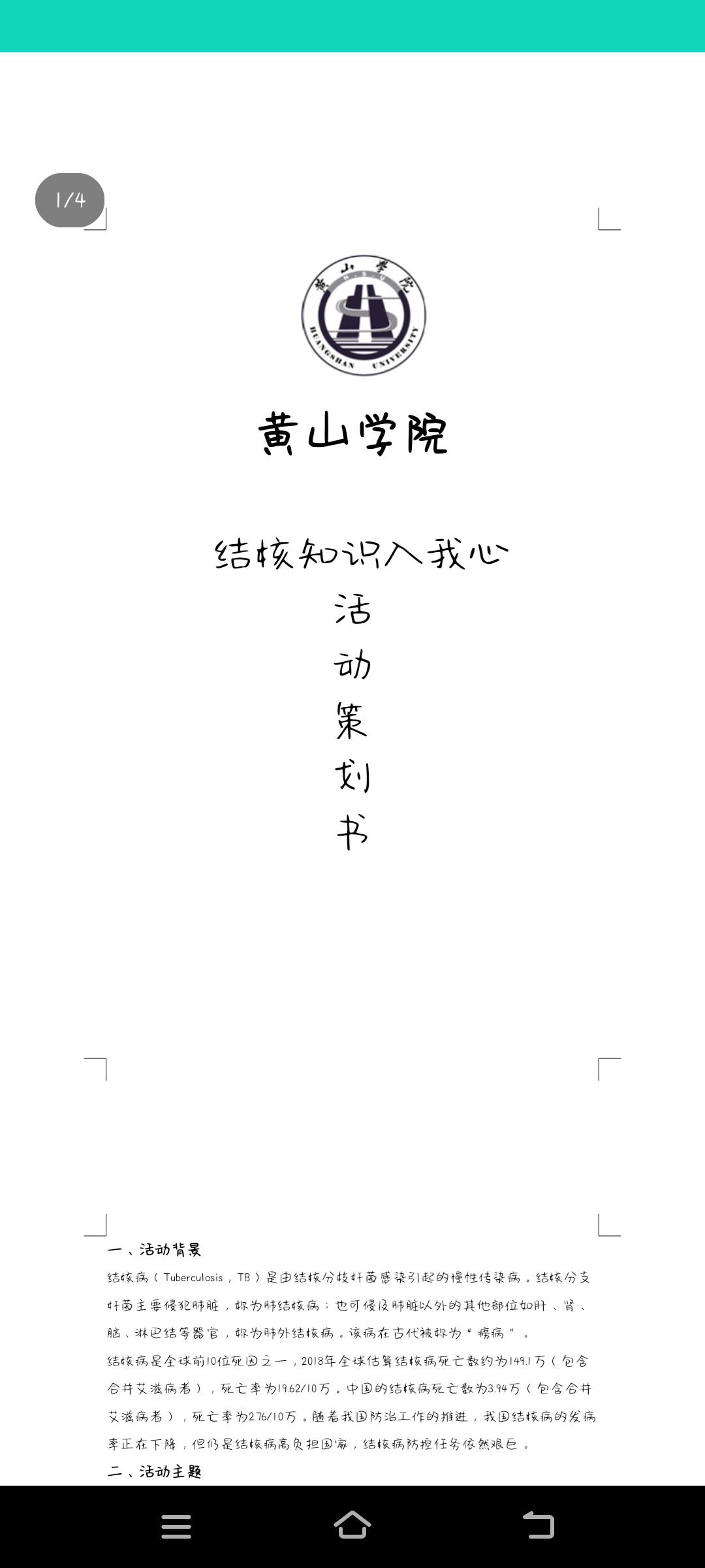 此次活动以征集策划书的形式收集更多有关肺结核知识宣传的方案旨在让同学们对肺结核有更多的了解,对全社会预防肺结核工作起到积极作用。