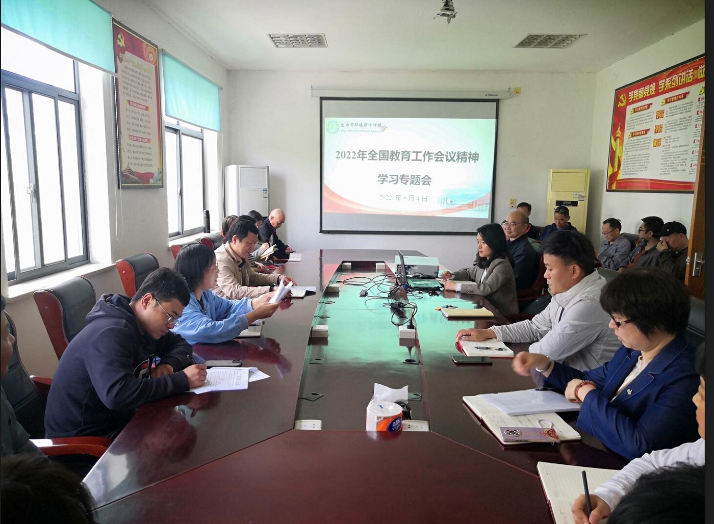 5月4日下午,yl6776永利集团党委于天都园林三楼会议室召开全体教职工会议,专题学习2022年全国教育工作会议精神。会议由党委副书记、院长佘新松主持。