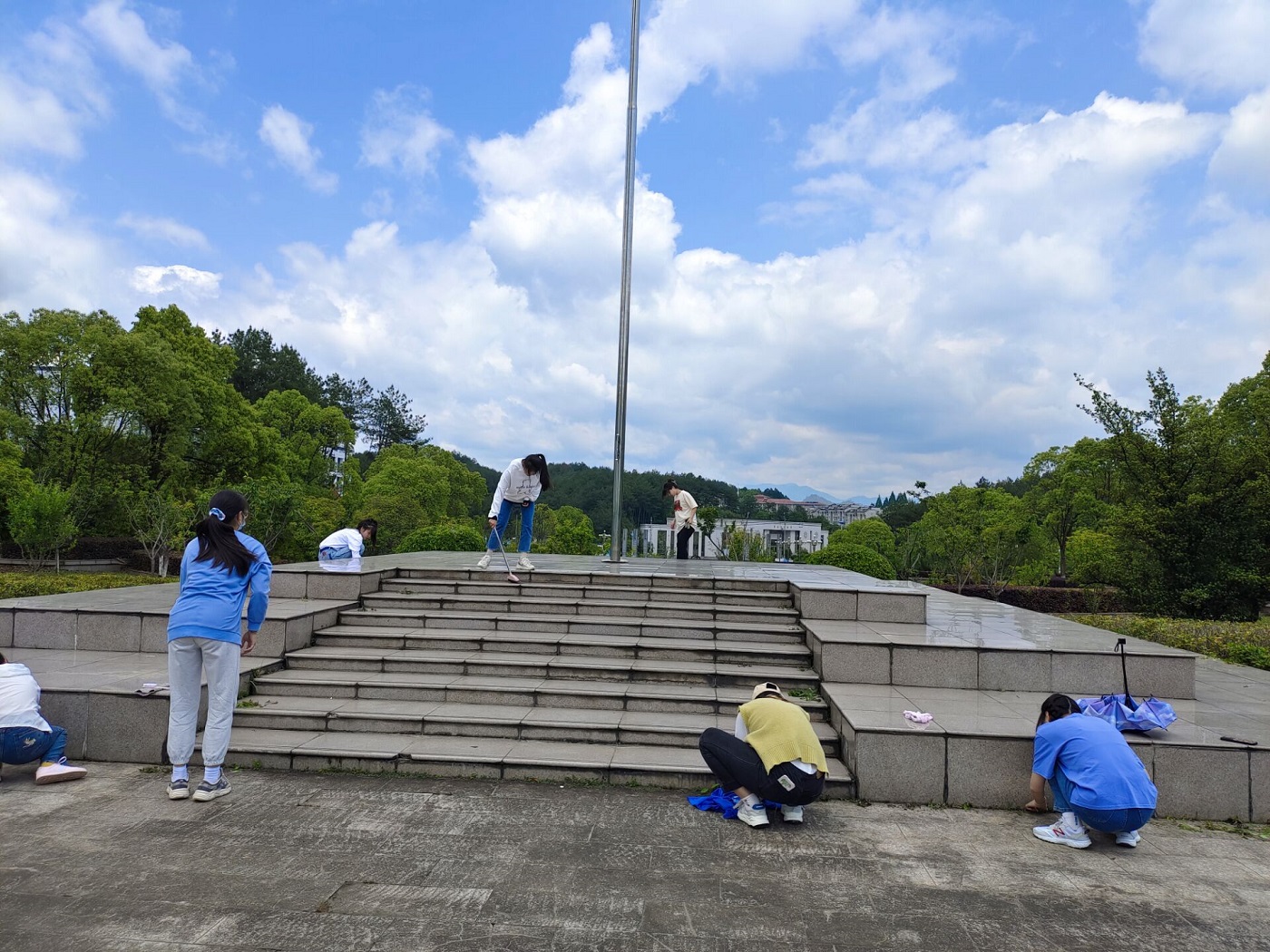 此次清扫活动主要涉及国旗台、校训墙两块区域。