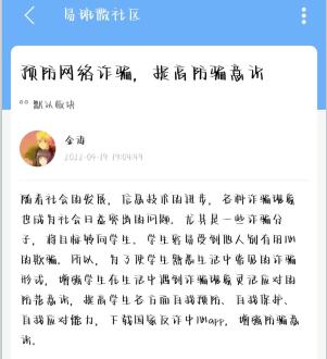 微社区中,班级同学通过浏览“预防网络诈骗,提高防骗意识”和“反恐防暴,维护安全”内容,切实提高防诈、防骗意识。