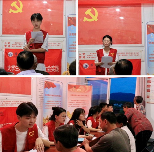 6月20日,实践团前往丰梧村村委会基地,牵手当地党员群众,在丰梧村村委会议室进行《百年征程波澜壮阔,矢志不渝接力奋斗》党史宣讲活动。
