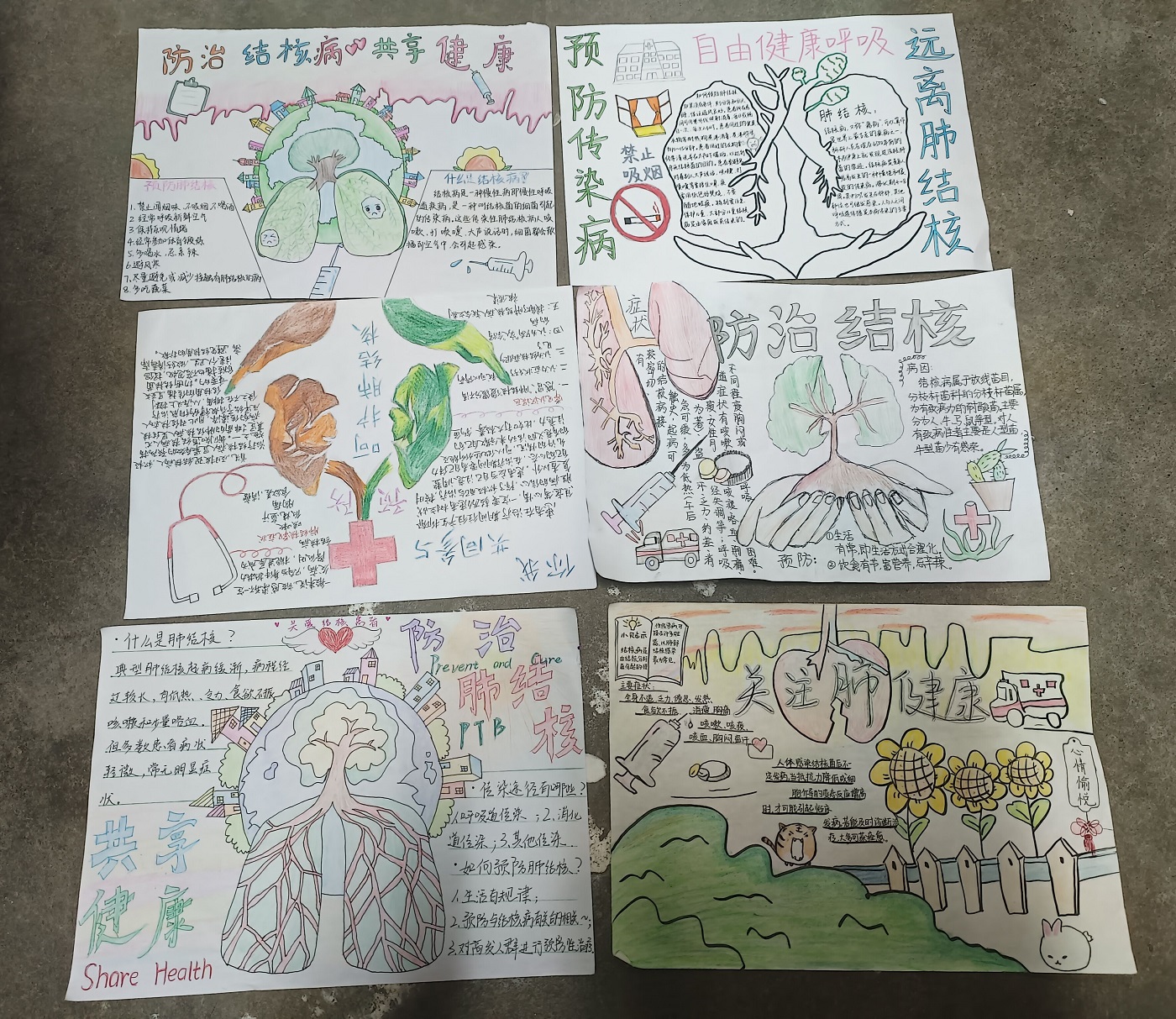 活动期间,同学们围绕主题从肺结核预防措施、感染后的临床表现、传播途径等几个方面进行创作,色彩和谐、条理清晰、突出重点,文字鲜活,用画笔架构桥梁,让大家用更轻松更直接地了解结核病防控知识。在手抄报展示期间,各位同学驻足观看,并纷纷感慨,预防结核病,都应从自身做起,从勤洗手、勤消毒、等这些日常生活的点滴做起。