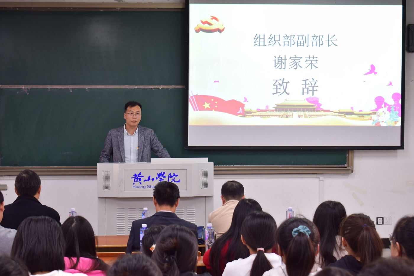 最后,组织部副部长谢家荣代表学校党委、校党委党校致辞。他向与会学员提出两点要求、期望:一是深刻理解、领悟党的性质、宗旨、指导思想等,争取早日组织上入党;二是树立全心全意为人民服务的宗旨意识,树立为实现共产主义奋斗终身的理想信念,做到思想上入党。