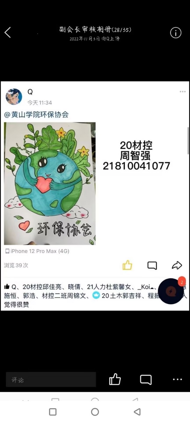 活动伊始,参加活动的同学们通过绘画的形式,发挥自己的想象力,设计出自己想象中的环保袋形状,随后发到QQ空间中集齐10个赞后截屏加上个人信息上传至活动群的指定相册中,由工作人员审核后进行签到。
