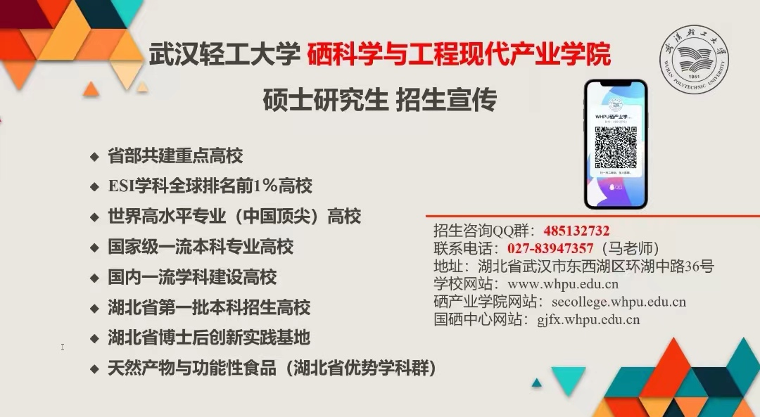 为加深我院学生对考研形势的认知以及对研究生招生院校情况的了解,助力学生精准选择报考研究生院校。9月6日下午,武汉轻工业大学硒科学与工程现代产业学院研究生招生宣讲于线上召开。本次宣讲会由武汉轻工业大学陈小玲博士主持,yl6776永利集团食品科学与工程专业、生物科学专业、生物技术专业的全体学生参加。