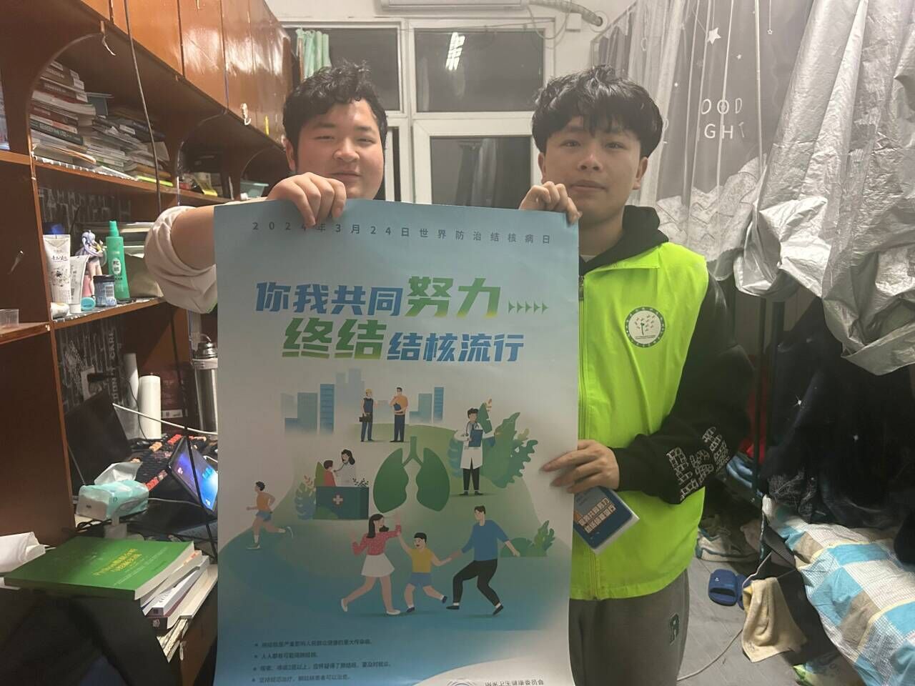 活动开始前,志愿者们到达指定地点进行培训,了解活动内容、注意事项及活动相关规定并进行分组。活动开始后,志愿者到达指定寝室楼通过发放宣传海报、现场答疑等方式对肺结核症状、传播途径、预防治疗措施等进行了大力宣传,最后拍照打卡留存记录。
