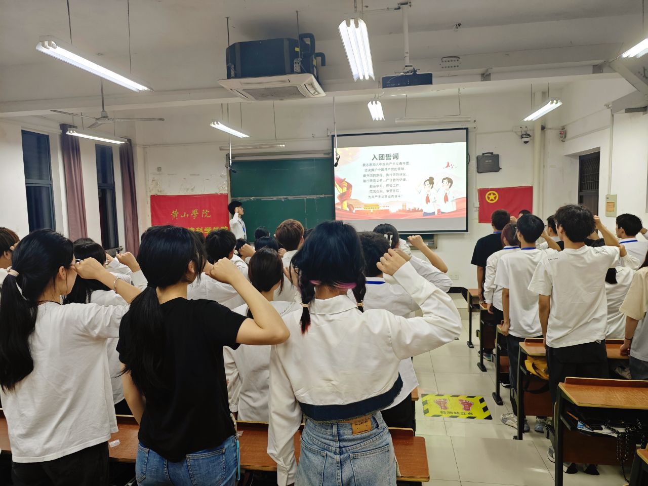 面对鲜艳的团旗,举起右手庄严宣誓:“我志愿加入中国共产主义青年团,坚决拥护中国共产党的领导,遵守团的章程,执行团的决议……”在团旗下,青年们的声音铿锵有力,他们的誓言表达了对共青团的忠诚和对祖国的深情。这一刻,他们仿佛与历史上无数热血青年站在了一起,共同铭记那份为国家和民族奉献的初心。