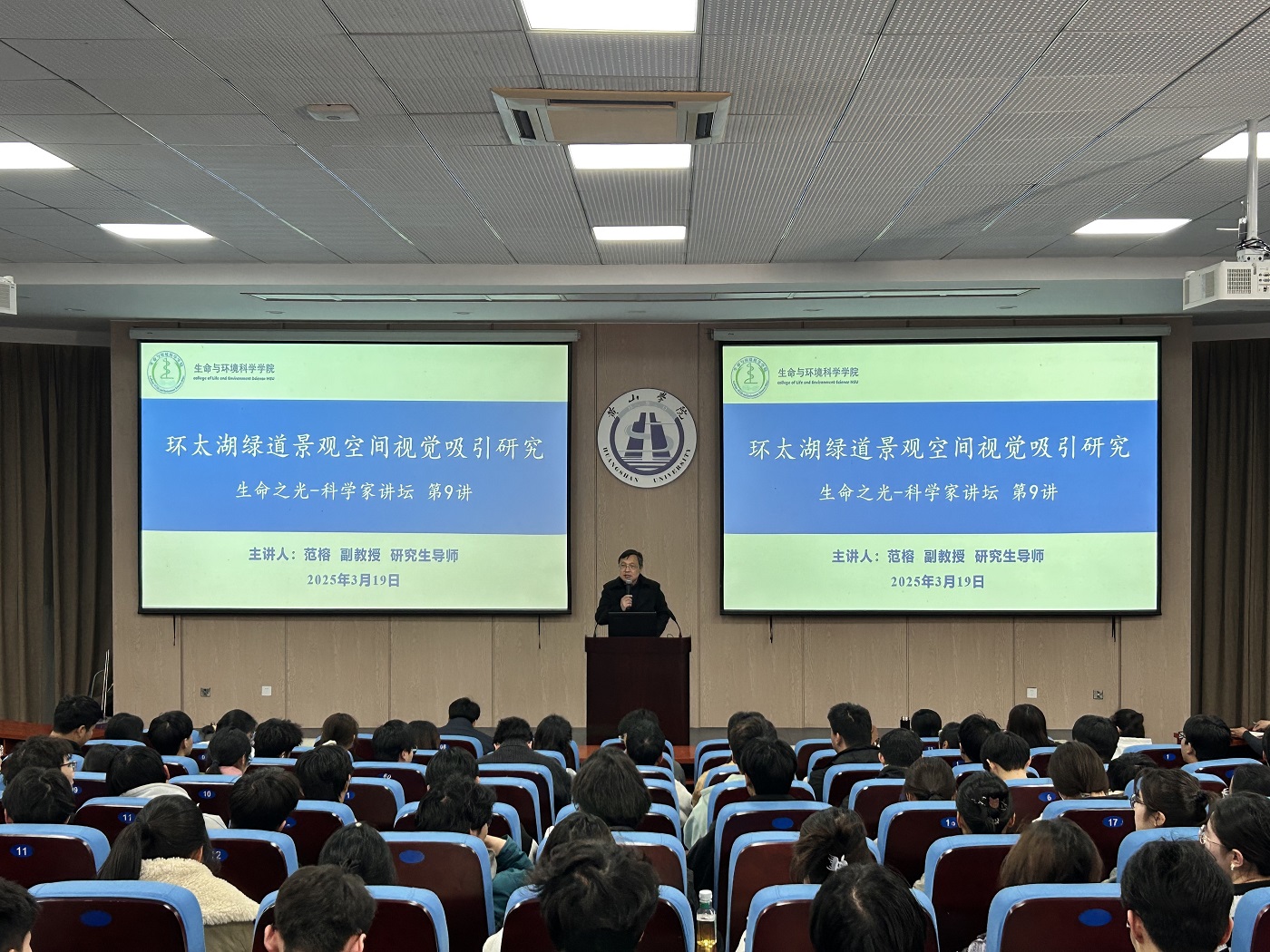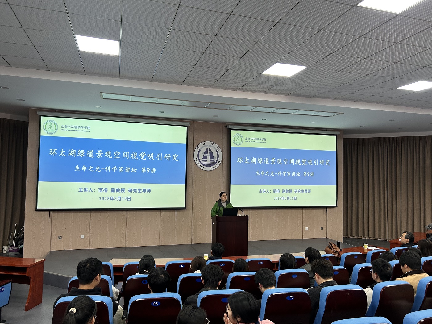 3月19日下午,yl6776永利集团“生命之光”科学家讲坛第九讲在文端楼一楼报告厅举行。南京林业大学范榕副教授应邀作题为“环太湖绿道景观空间视觉吸引研究”的学术报告。讲坛由yl6776永利集团党委副书记、纪委书记万志兵主持,园林、旅游管理、城乡规划等专业200余名师生参加。