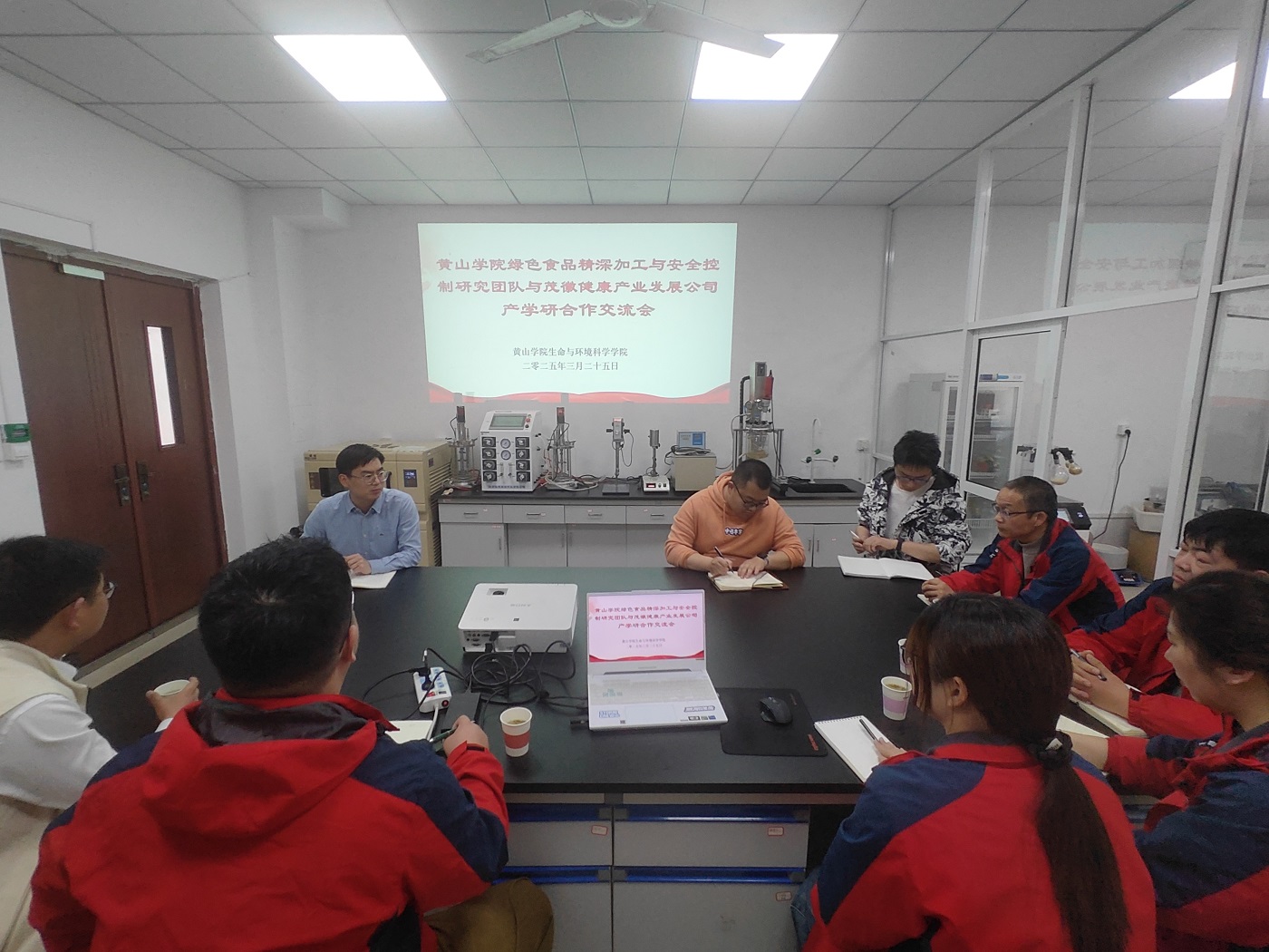 3月25日下午,茂徽健康产业发展(黄山)有限公司董事长胡高峰率队到访学校,与6776永利集团健康食品与功能生物制品创新团队开展产学研合作交流。会议由团队负责人、食品科学与工程教研室主任吴永祥主持,团队成员张唯勤、李杨参加会议。